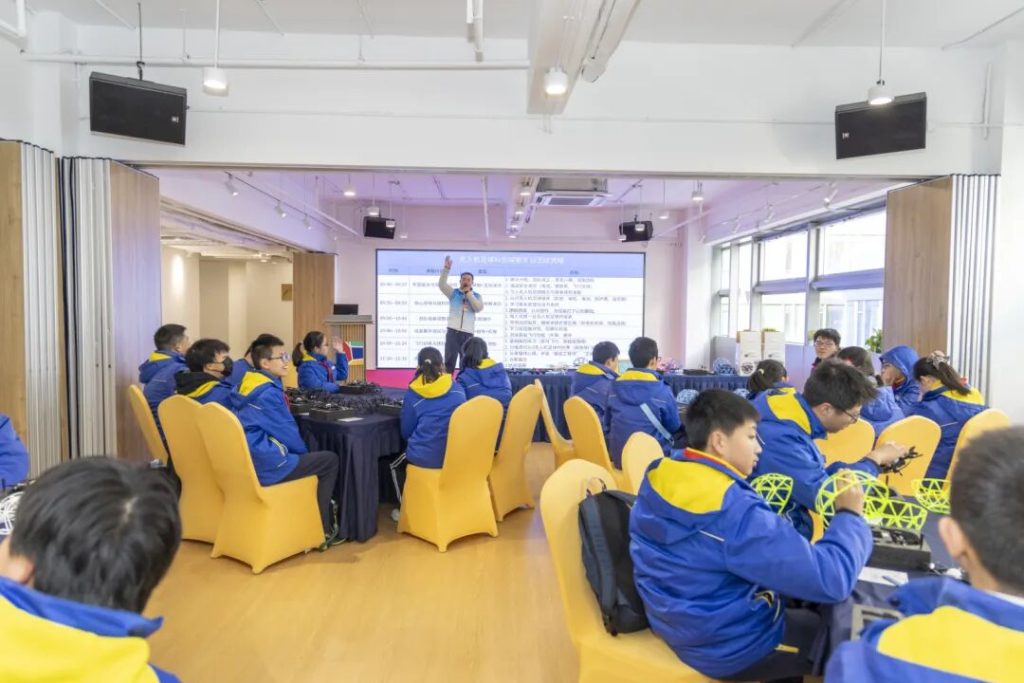 本次无人机科创探索营旨在打破传统课堂边界,构建一个“即学即用”的沉浸式实践场。活动中,同学们在专业工程师的一对一指导下,完整经历了从零部件到整机的装机初体验,亲手完成了调试与飞行;在创客科普环节深入了解了飞行原理与创新应用。最激动人心的莫过于飞行实操、障碍穿越与竞技挑战环节,同学们化身“飞行员”,在紧张刺激的赛道中精准操控,充分锻炼了手脑协调与临场应变能力,真正体验了科技带来的挑战与乐趣。